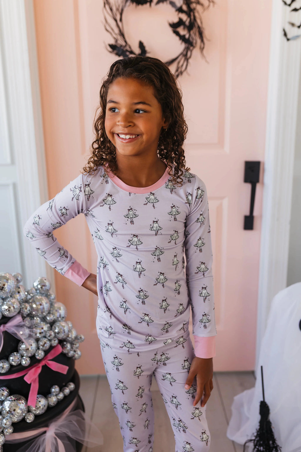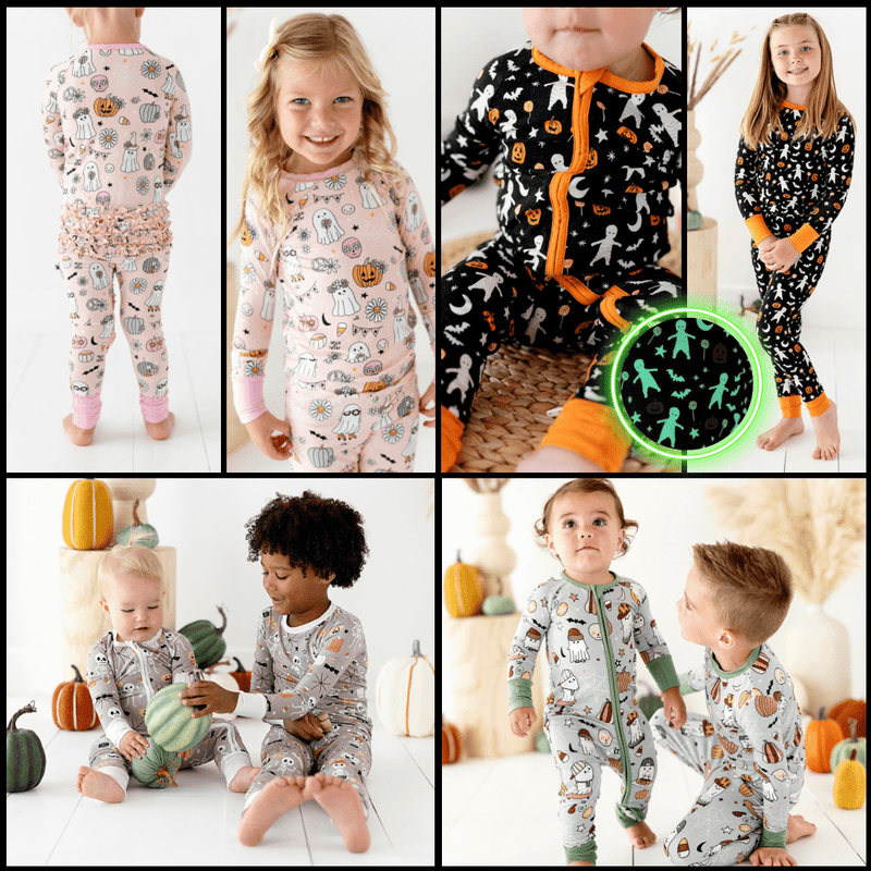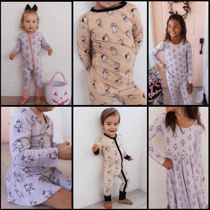 Quincy Mae | Bamboo Zip Footie - Pink ghosts