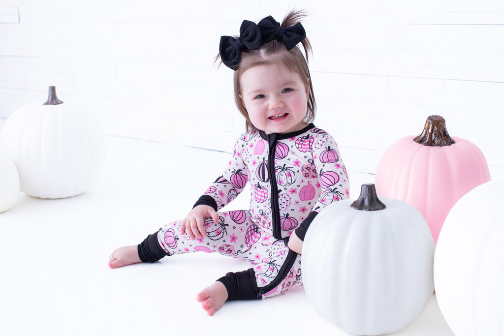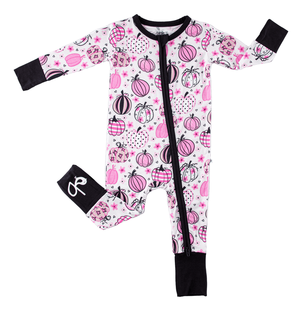 Quincy Mae | Bamboo Zip Footie - Pink ghosts