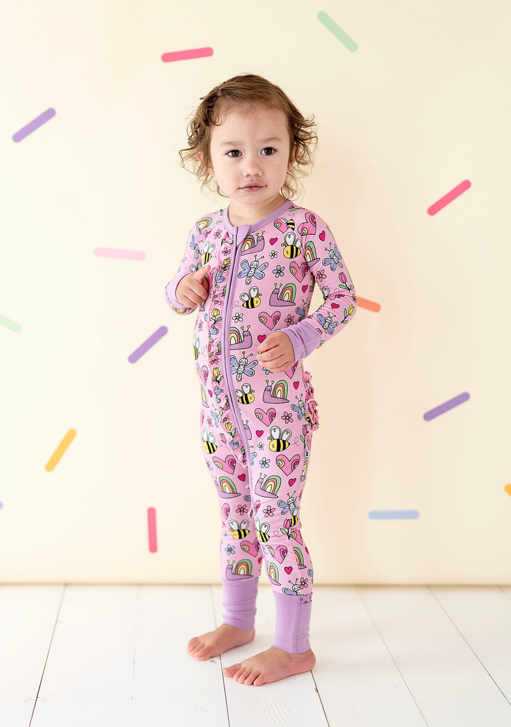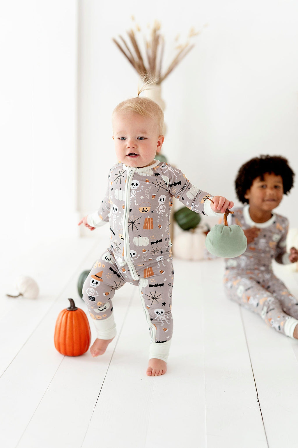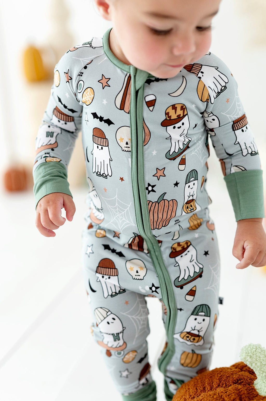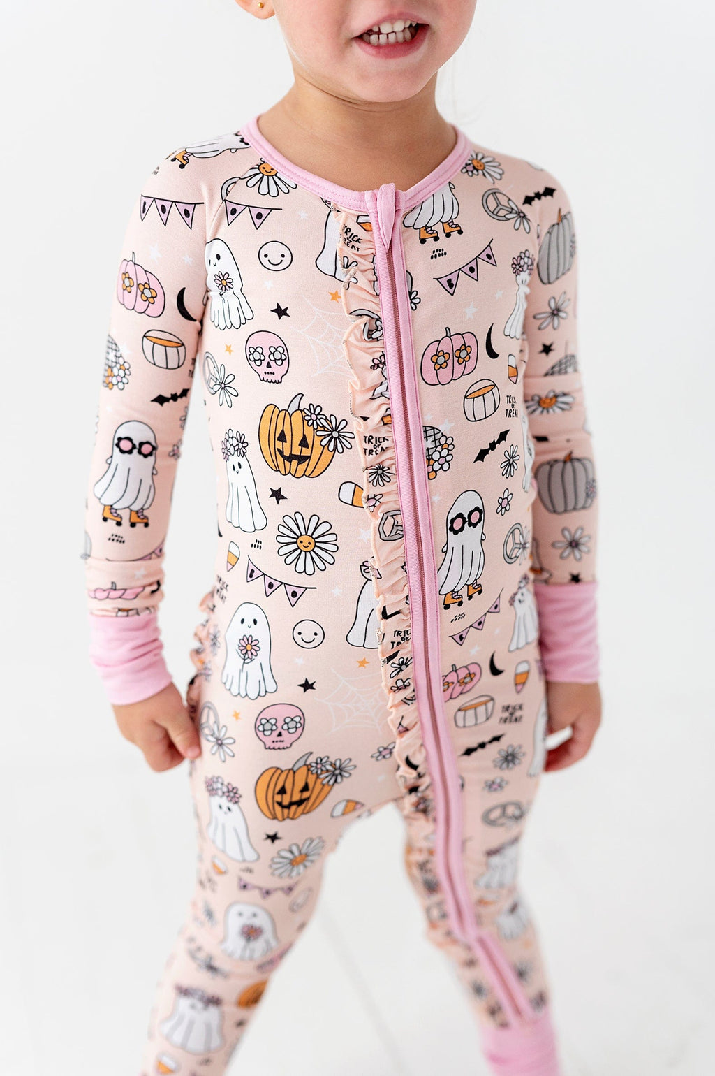 Quincy Mae | Bamboo Zip Footie - Pink ghosts