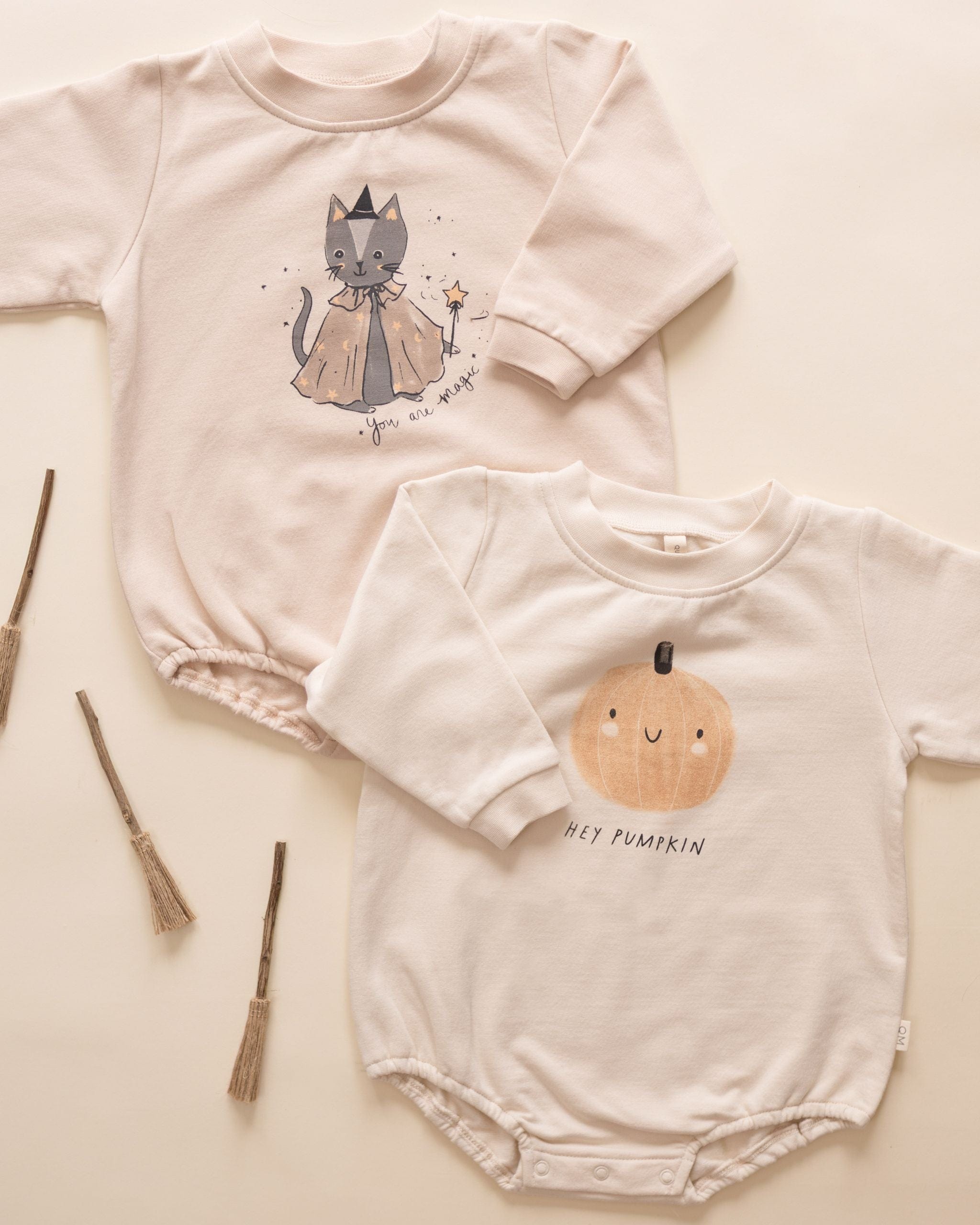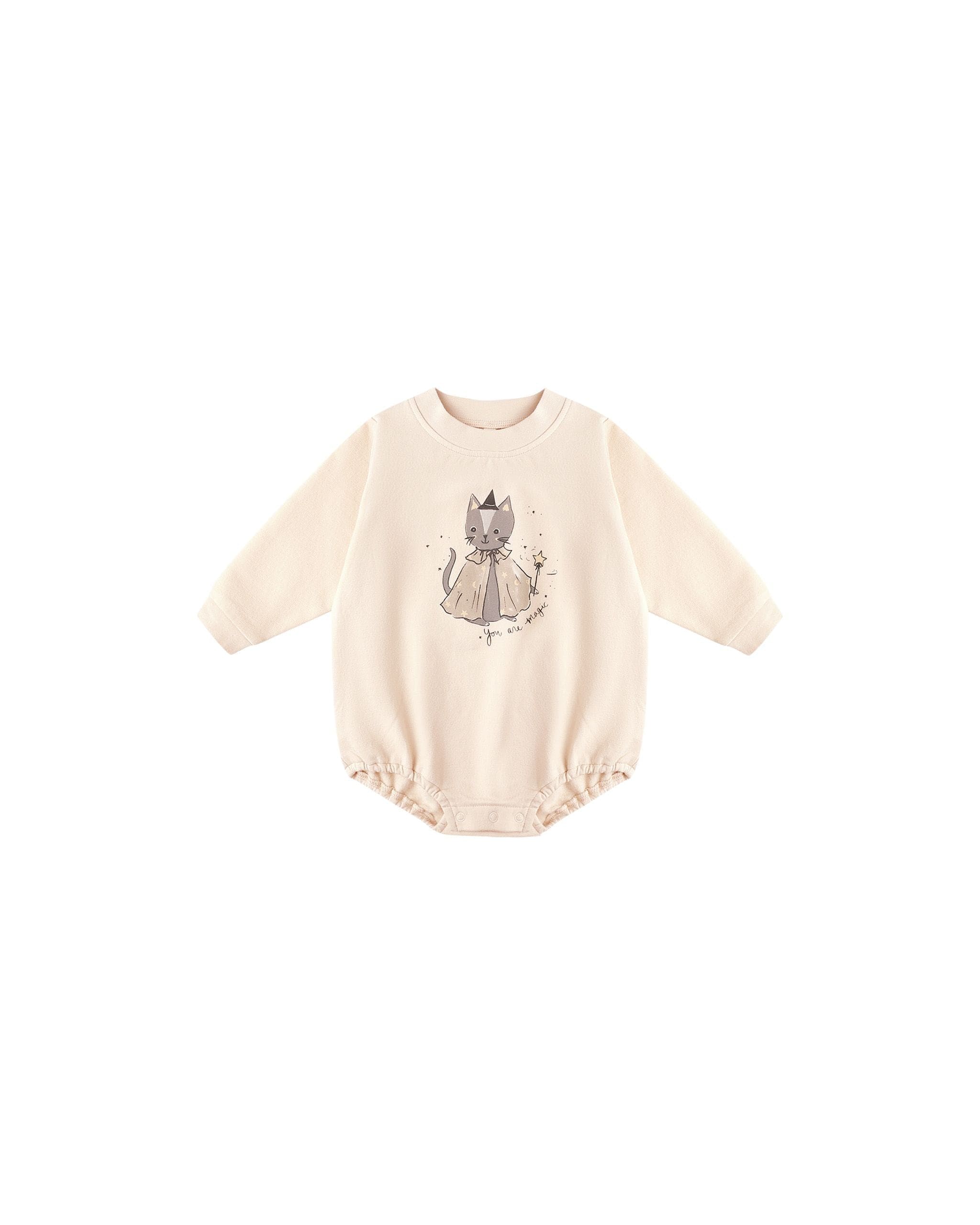 Quincy Mae | Crewneck Bubble Romper - Magic Cat